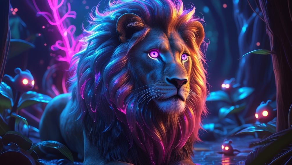 lion art, digital painting, AI artwork, fantasy lion, hyperrealistic lion, pop surrealism, neon art, glowing animals, bioluminescent jungle, dreamscape, mystical creatures, cinematic lighting, surreal realism, cosmic fantasy, high-resolution artwork, limited edition digital art, vibrant animal art, futuristic jungle, wildlife fantasy, psychedelic animals, majestic lion, lion pack, digital download, neon glow, ethereal jungle, Gumroad art, trending AI art, luxury digital art, animal lovers, wildlife illustration, fantasy artwork